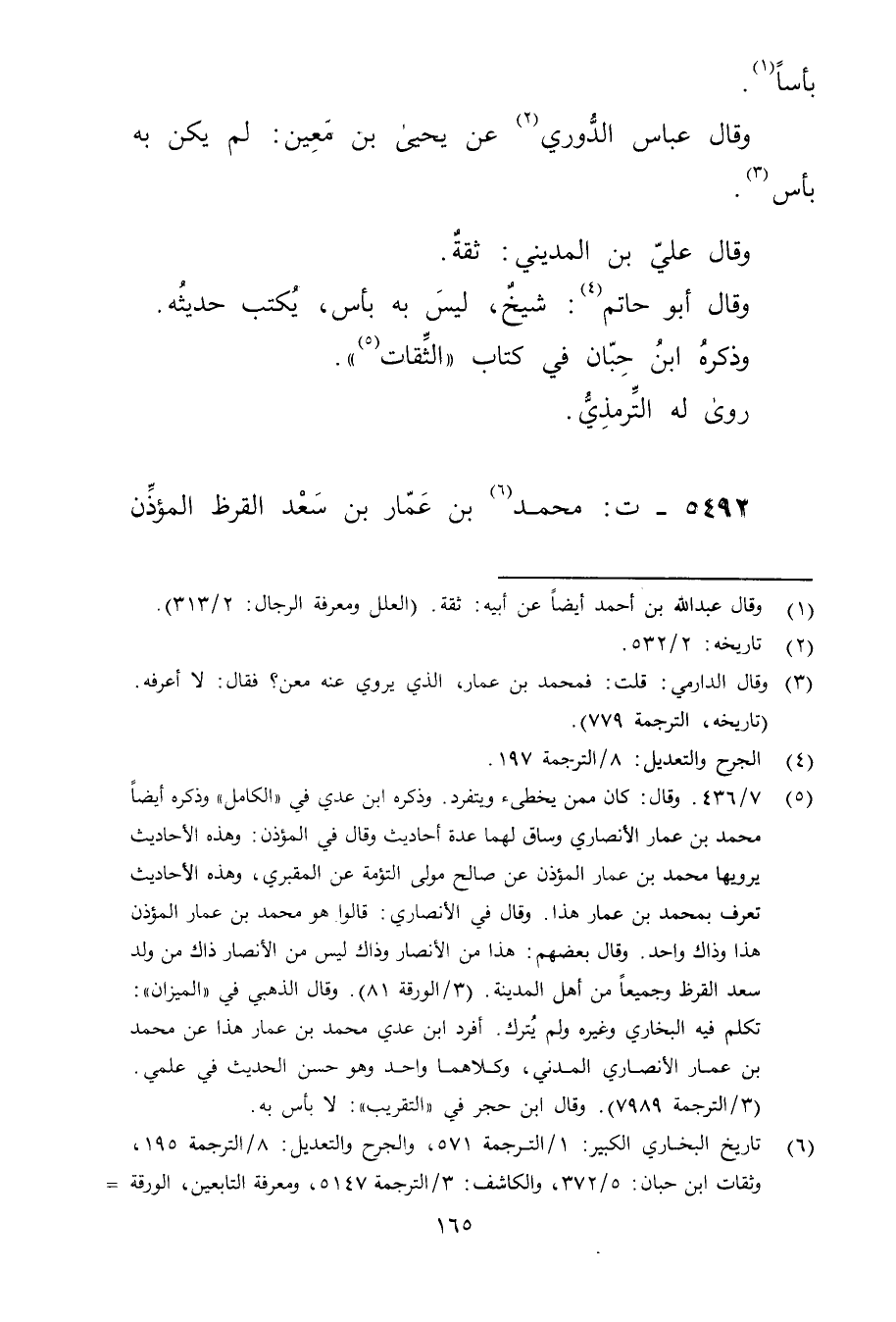5492 - ت: مُحَمَّد بن عمار بن سعد القرظ المؤذن (6) .