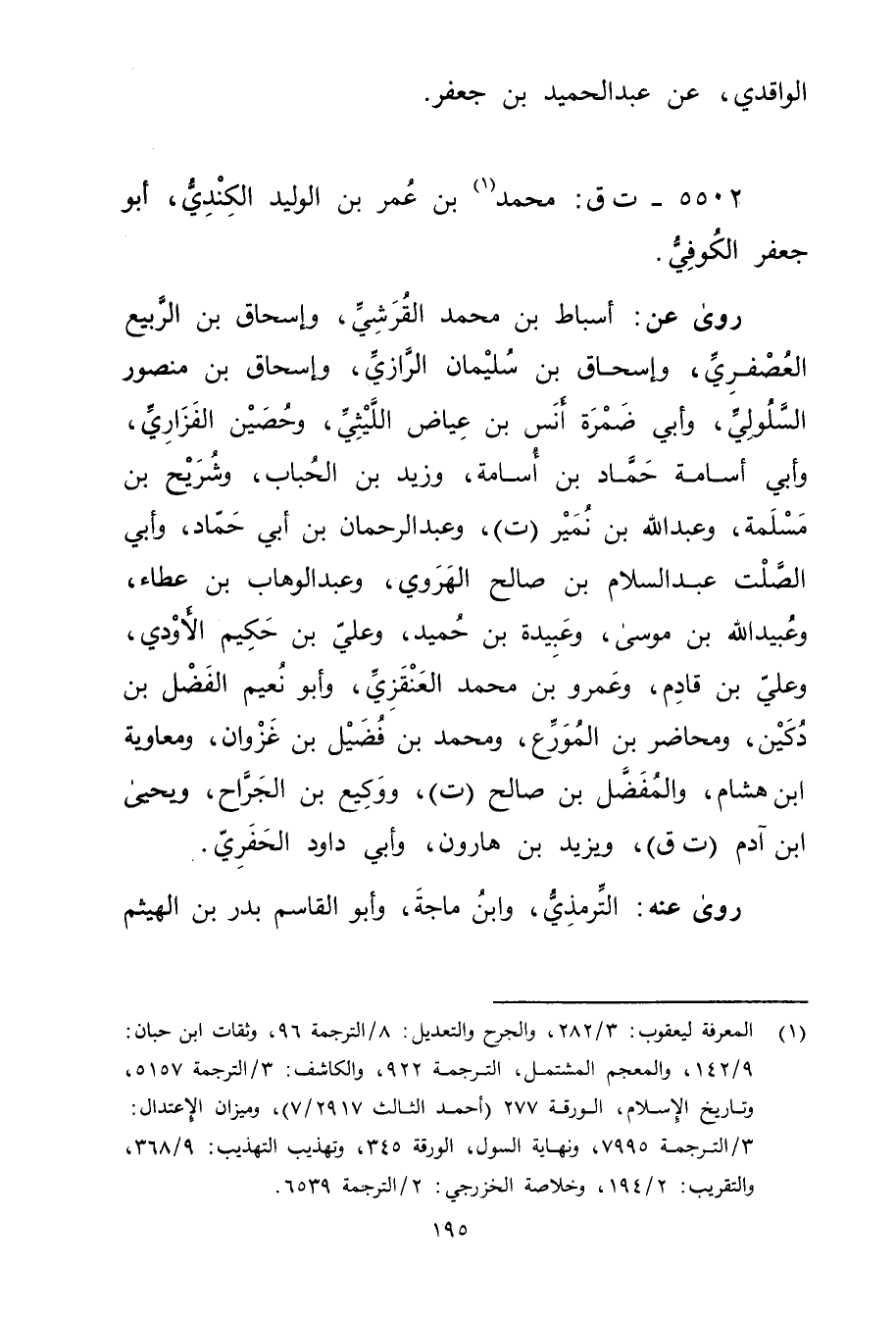 5502 - ت ق: مُحَمَّد بْن عُمَر بْن الوليد الكندي (1) ، أَبُو جَعْفَر الكوفي.
