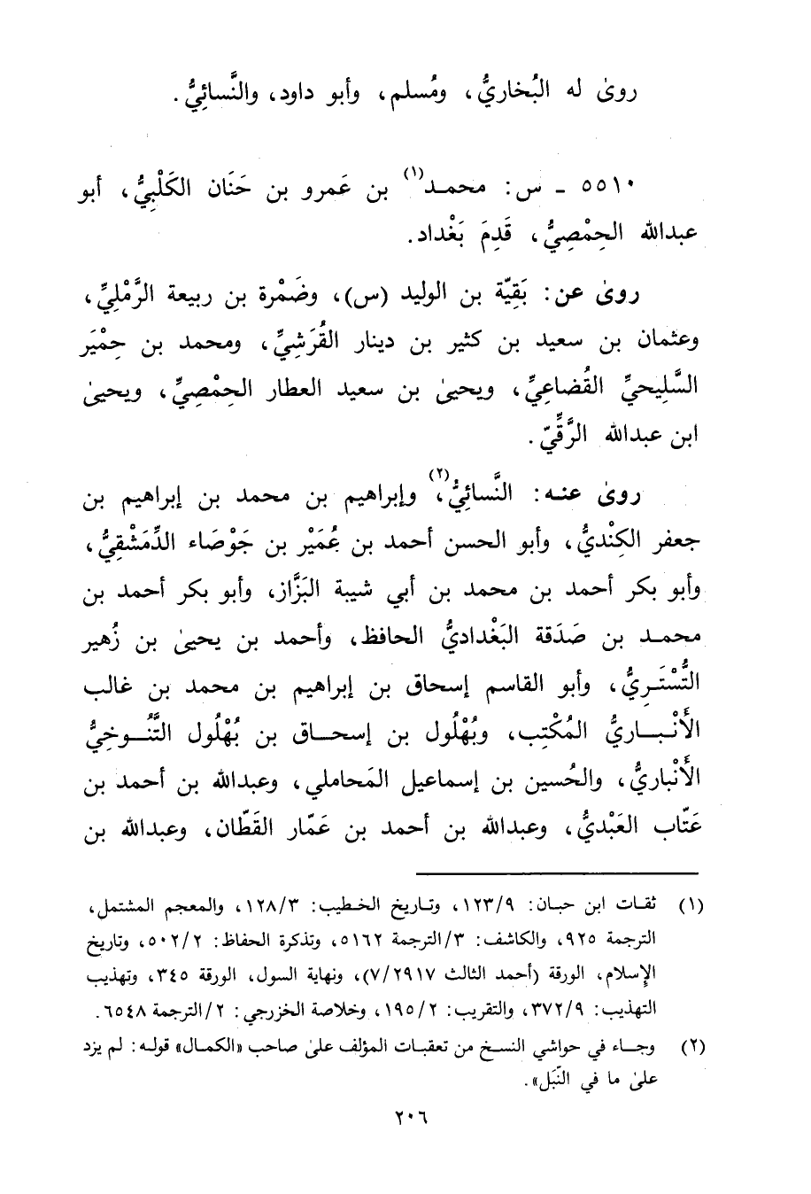 5510 - س: مُحَمَّد بن عَمْرو بن حنان الكلبي (1) ، أَبُو عَبد اللَّهِ الحمصي، قدم بغداد.