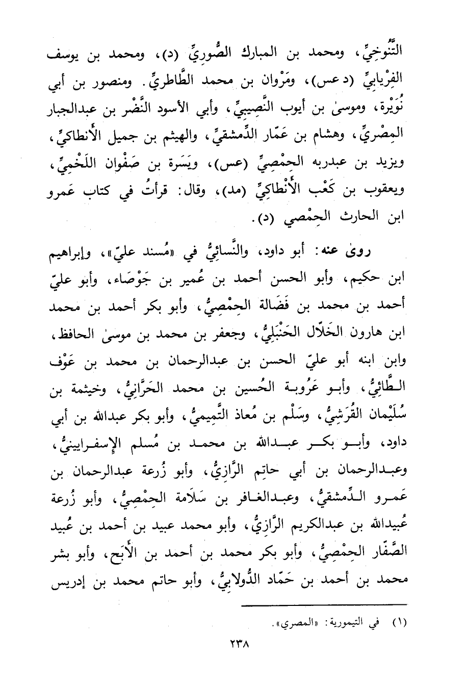 ابن هَارُونَ الخلال الحنبلي، وجعفر بن مُحَمَّد بن مُوسَى الحافظ، وابن ابنه أبو علي الحسن بن عَبْدُ الرَّحْمَنِ بْنُ مُحَمَّدِ بْنِ عوف الطائي، وأَبُو عَرُوبَة الحسين بن مُحَمَّد الحراني، وخيثمة بن سُلَيْمان القرشي، وسلم بن معاذ التميمي، وأَبُو بكر عَبد اللَّهِ بْن أَبي داود، وأبو بكر عَبد اللَّهِ بْن مُحَمَّد بْن مسلم الإسفراييني، وعَبْد الرَّحْمَنِ بْن أَبي حاتم الرازي، وأبو زُرْعَة عَبْد الرَّحْمَنِ بْن عَمْرو الدمشقي، وعبد الغافر بن سلامة الحمصي، وأَبُو زُرْعَة عُبَيد اللَّهِ بْن عبد الكريم الرازي، وأَبُو مُحَمَّد عُبَيد بن أَحْمَدَ بن عُبَيد الصفار الحمصي، وأَبُو بكر مُحَمَّد بن أَحْمَدَ بن الأبح، وأَبُو بشر مُحَمَّد بْن أَحْمَد بْن حماد الدولابي، وأَبُو حاتم مُحَمَّد بن إدريس
