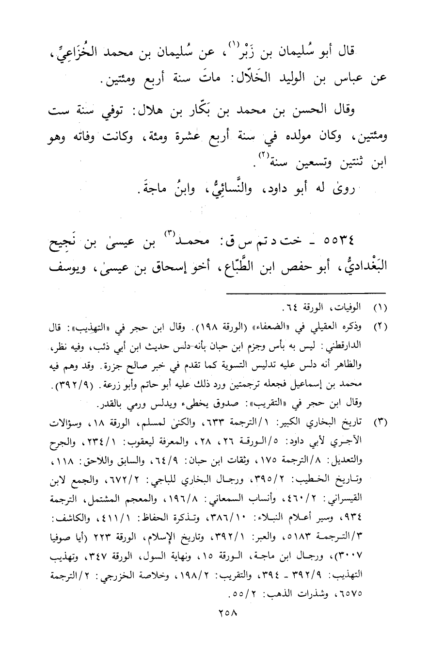 5534 - خت د تم س ق: مُحَمَّد بن عيسى بن نجيح البغدادي (3) ، أبو حفص ابن الطباع، أخو إسحاق بن عيسى، ويوسف