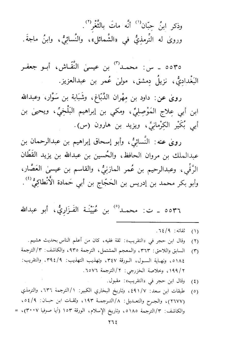 5535 - س: مُحَمَّد بن عيسى النقاش (3) ، أَبُو جعفر البغدادي، نزيل دمشق، مولى عُمَر بن عبد العزيز.