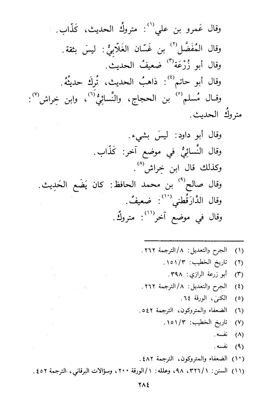 (11) السنن: 1 / 326، 98، وعلله: 1 / الورقة 200، وسؤالات البرقاني، الترجمة 452.