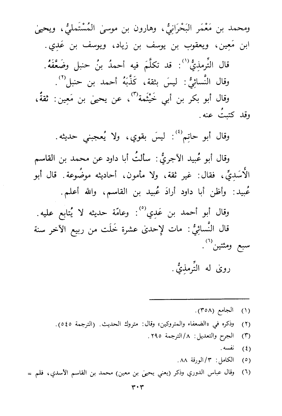 (6) وَقَال عَباس الدُّورِيُّ وذكر (يَعْنِي يَحْيَى بْن مَعِين) مُحَمَّد بن القاسم الأسدي، فلم =