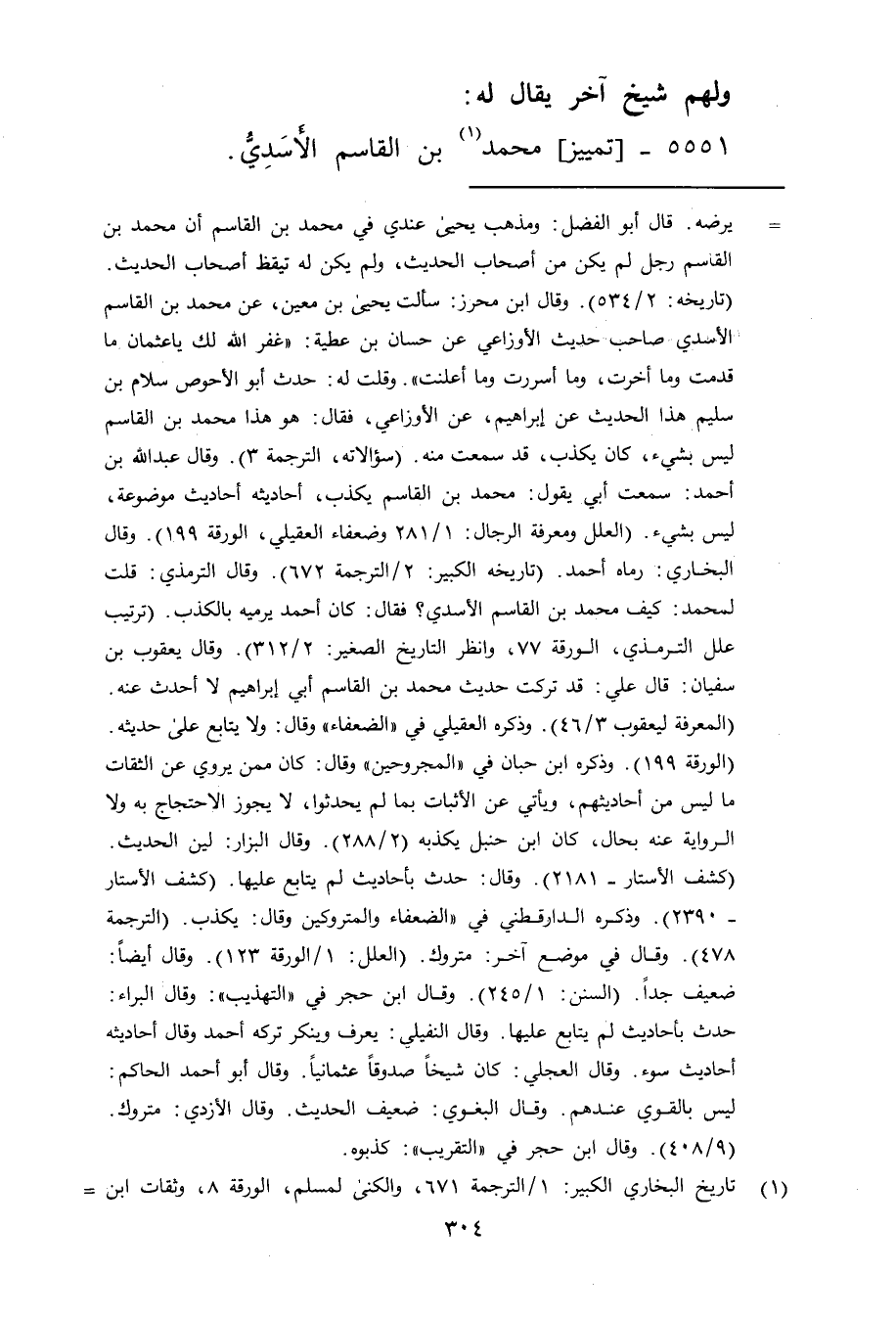 5551 - (تمييز) مُحَمَّد بن القاسم الأسدي (1) .