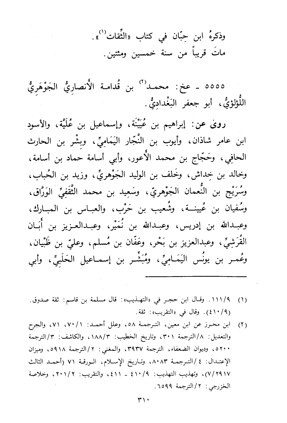 5555 - عخ: مُحَمَّد بن قُدَامَةَ الأَنْصارِيّ الجوهري اللؤلؤي (2) ، أبو جعفر البغدادي.