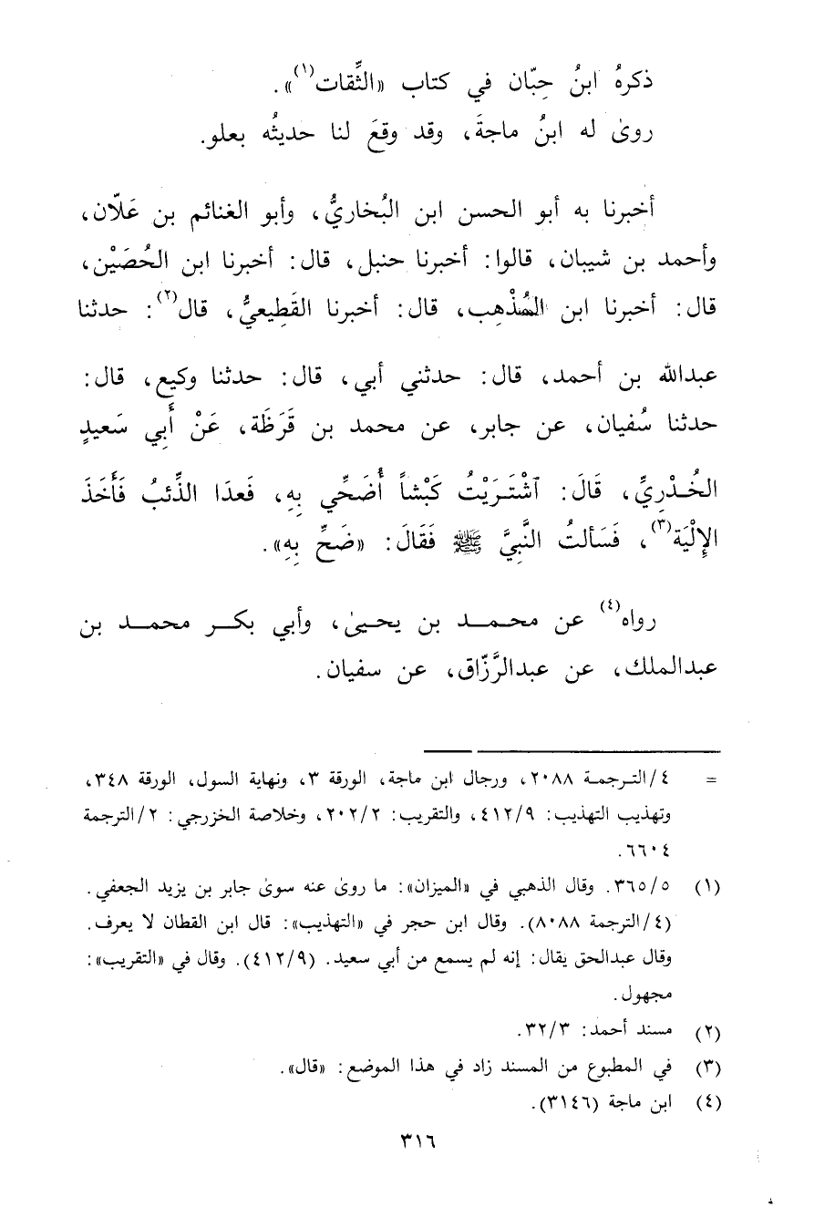 = 4 / الترجمة 2088، ورجال ابن ماجة، الورقة 3، ونهاية السول، الورقة 348، وتهذيب التهذيب: 9 / 412، والتقريب: 2 / 202، وخلاصة الخزرجي: 2 / الترجمة 6604.