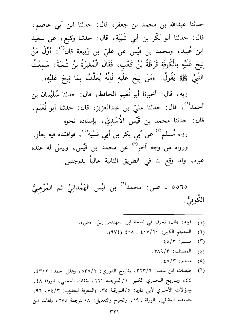 5565 - عس: مُحَمَّد بن قيس الهمداني ثم المرهبي الكوفي (6) .