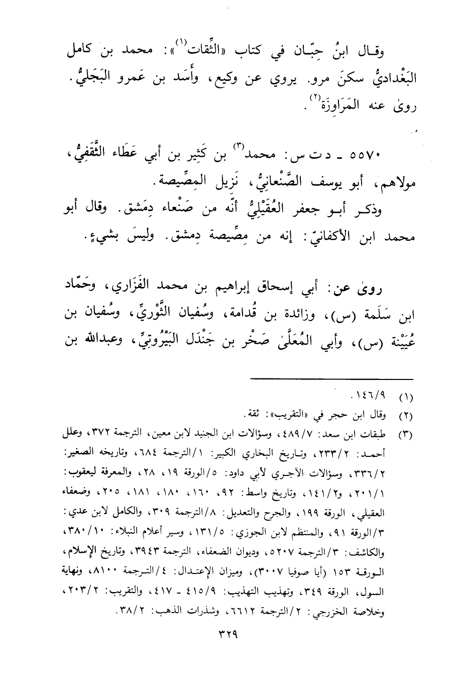5570 - د ت س: مُحَمَّد بن كثير بن أَبي عطاء الثقفي (3) ، مولاهم، أَبُو يوسف الصنعاني، نزيل المصيصة.