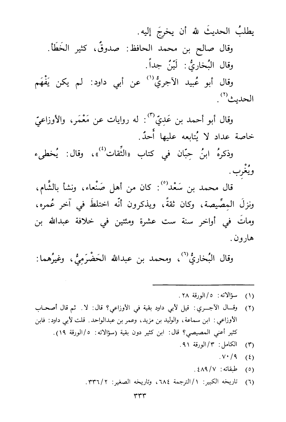 (6) تاريخه الكبير: 1 / الترجمة 684، وتاريخه الصغير: 2 / 336.