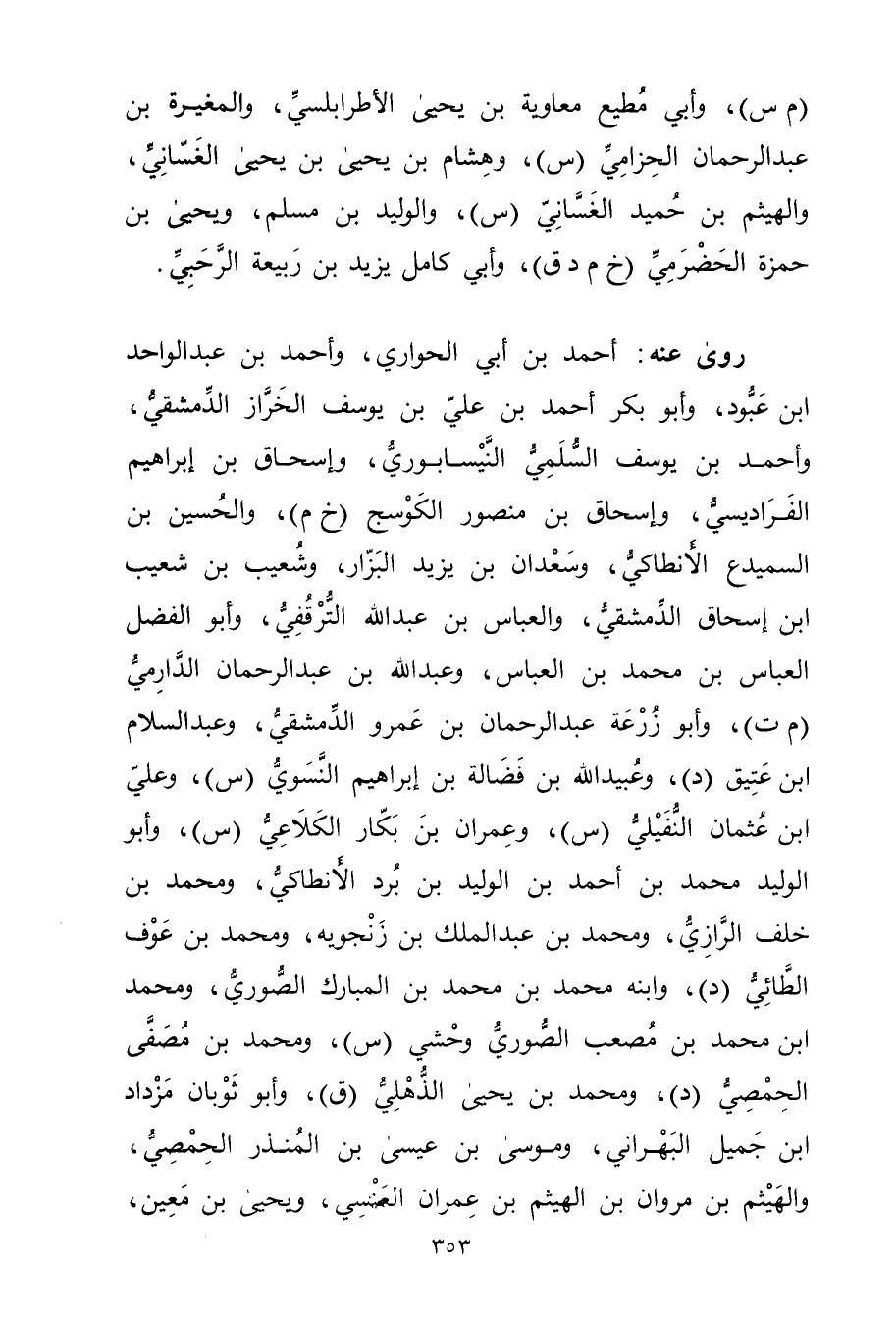 (م س) ، وأبي مطيع معاوية بن يحيى الأطرابلسي، والمغيرة بن عَبْدِ الرَّحْمَنِ الحزامي (س) ، وهشام بْن يحيى بْن يحيى الغساني، والهيثم بْن حميد الغساني (س) ، والوليد بْن مسلم، ويحيى بْن حمزة الحضرمي (خ م د ق) ، وأبي كامل يزيد بن ربيعة الرحبي.