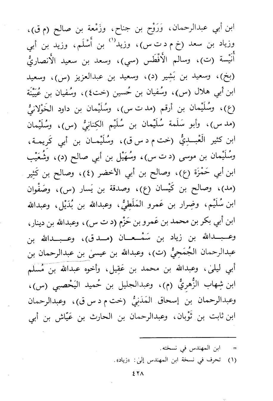 ابن أَبي عَبْد الرَّحْمَنِ، وروح بن جناح، وزمعة بن صالح (م ق) ، وزياد بن سعد (خ م د ت س) ، وزيد (1) بن أسلم، وزيد بن أَبي أنيسة (ت) ، وسالم الأفطس (سي) ، وسعد بْن سَعِيد الأَنْصارِيّ (بخ) ، وسَعِيد بْن بشير (د) ، وسَعِيد بن عَبْد الْعَزِيزِ (س) ، وسَعِيد ابن أَبي هلال (س) ، وسفيان بن حسين (خت 4) ، وسفيان بن عُيَيْنَة (ع) ، وسُلَيْمان بن أرقم (مد ت س) ، وسُلَيْمان بن داود الخولاني (مد س) ، وأَبُو سلمة سُلَيْمان بن سليم الكناني (س) ، وسُلَيْمان ابن كثير العبدي (خت م د س ق) ، وسُلَيْمان بْن أَبي كريمة، وسُلَيْمان بن مُوسَى (د ت س) ، وسهيل بن أَبي صالح (د) ، وشعيب ابن أَبي حمزة (ع) ، وصالح بن أَبي الأخضر (4) ، وصالح بن كثير (مد) ، وصالح بن كيسان (ع) ، وصدقة بن يسار (س) ، وصفوان ابن سليم، وضرار بن عَمْرو الملطي، وعَبد الله بن بديل، وعَبد الله بْن أَبي بكر بْن مُحَمَّد بْن عَمْرو بْن حزم (د ت س) ، وعبد الله بْن دينار، وعَبد الله بْن زياد بْن سمعان (مد ق) ، وعبد الله بْن عَبْد الرَّحْمَنِ الجمحي (ت) ، وعَبد الله بن عِيسَى بْن عَبْد الرَّحْمَنِ بْن أَبي ليلى، وعَبد اللَّه بْن مُحَمد بن عَقِيل، وأخوه عَبْد الله بن مسلم ابن شهاب الزُّهْرِيّ (م) ، وعبد الجليل بْن حميد الْيَحْصِبِيّ (س) ، وعبد الرَّحْمَنِ بن إسحاق المدني (خت م د س ق) ، وعبد الرحمن ابن ثابت بْن ثوبان، وعبد الرحمن بْن الحارث بْن عياش بْن أَبي
