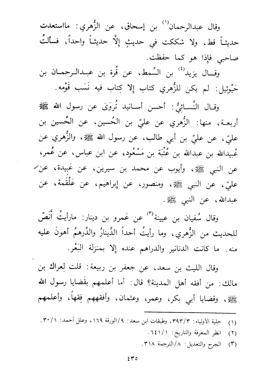 (1) حلية الاولياء: 3 / 393، وطبقات ابن سعد: 9 / الورقة 169، وعلل أحمد: 1 / 30.