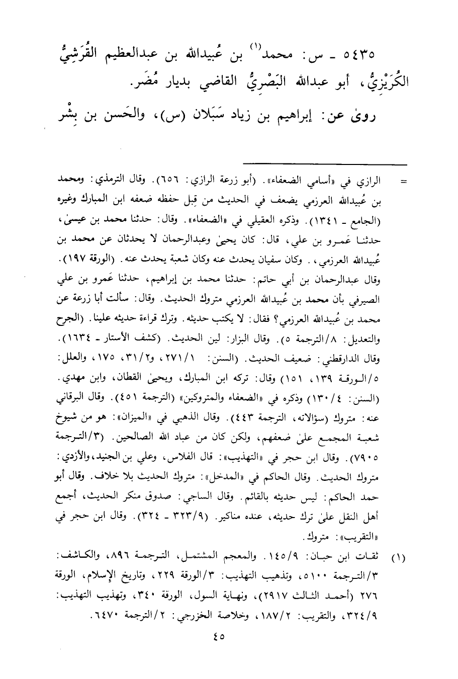 5435 - س: مُحَمَّد بن عُبَيد الله بن عبد العظيم القرشي الكريزي (1) ، أَبُو عَبد اللَّهِ البَصْرِيّ القاضي بديار مضر.