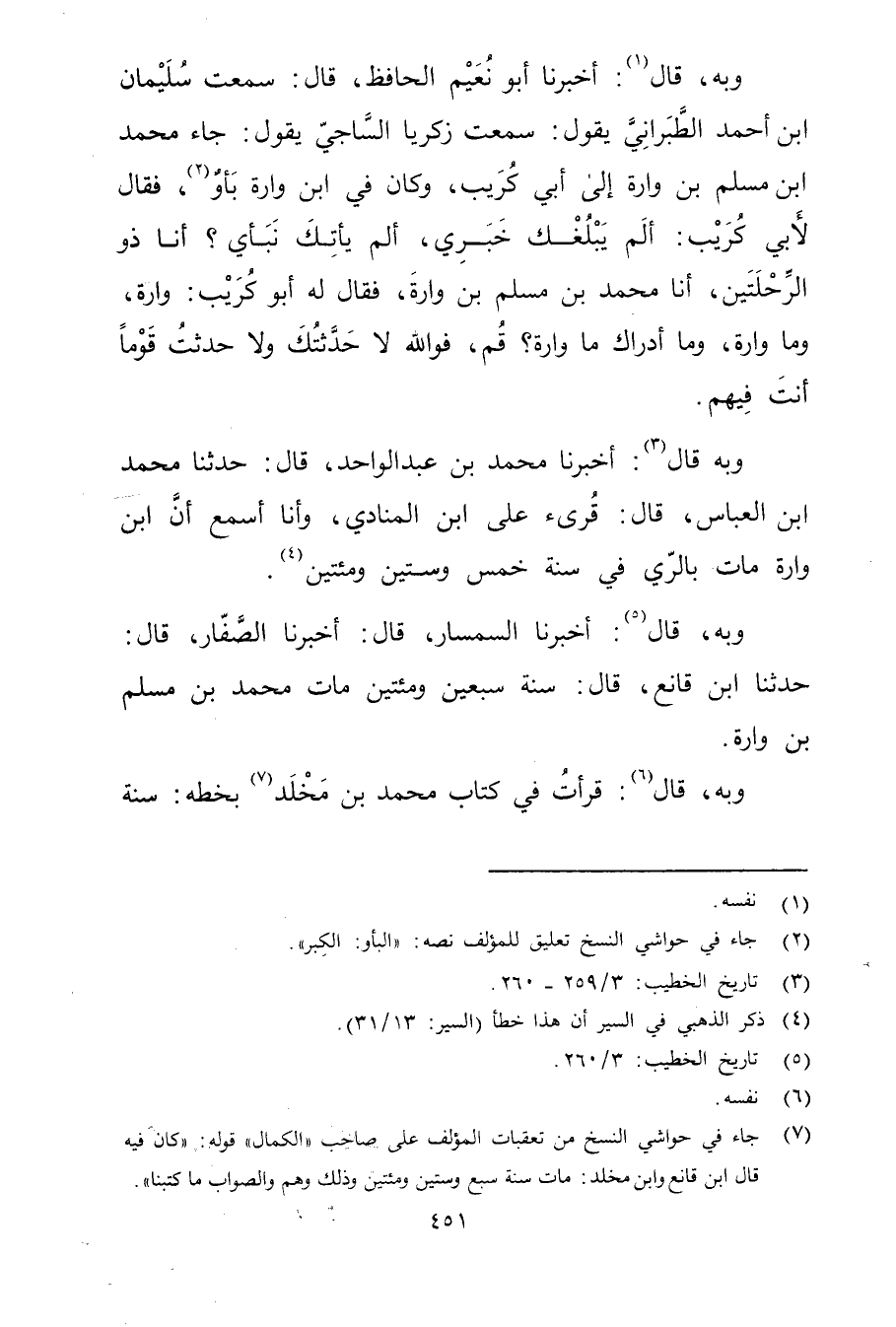 (3) تاريخ الخطيب: 3 / 259 - 260.