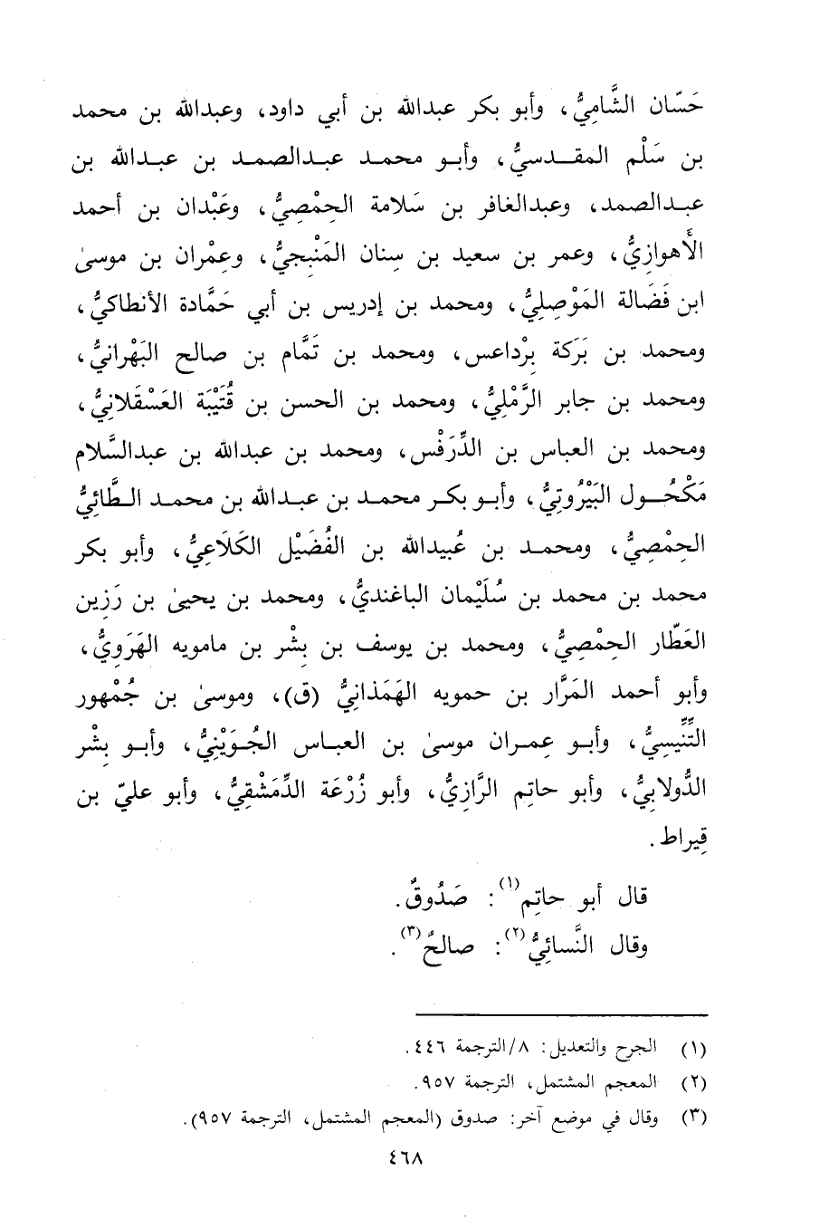 (3) وَقَال فِي موضع آخر: صدوق (المعجم المشتمل، الترجمة 957) .