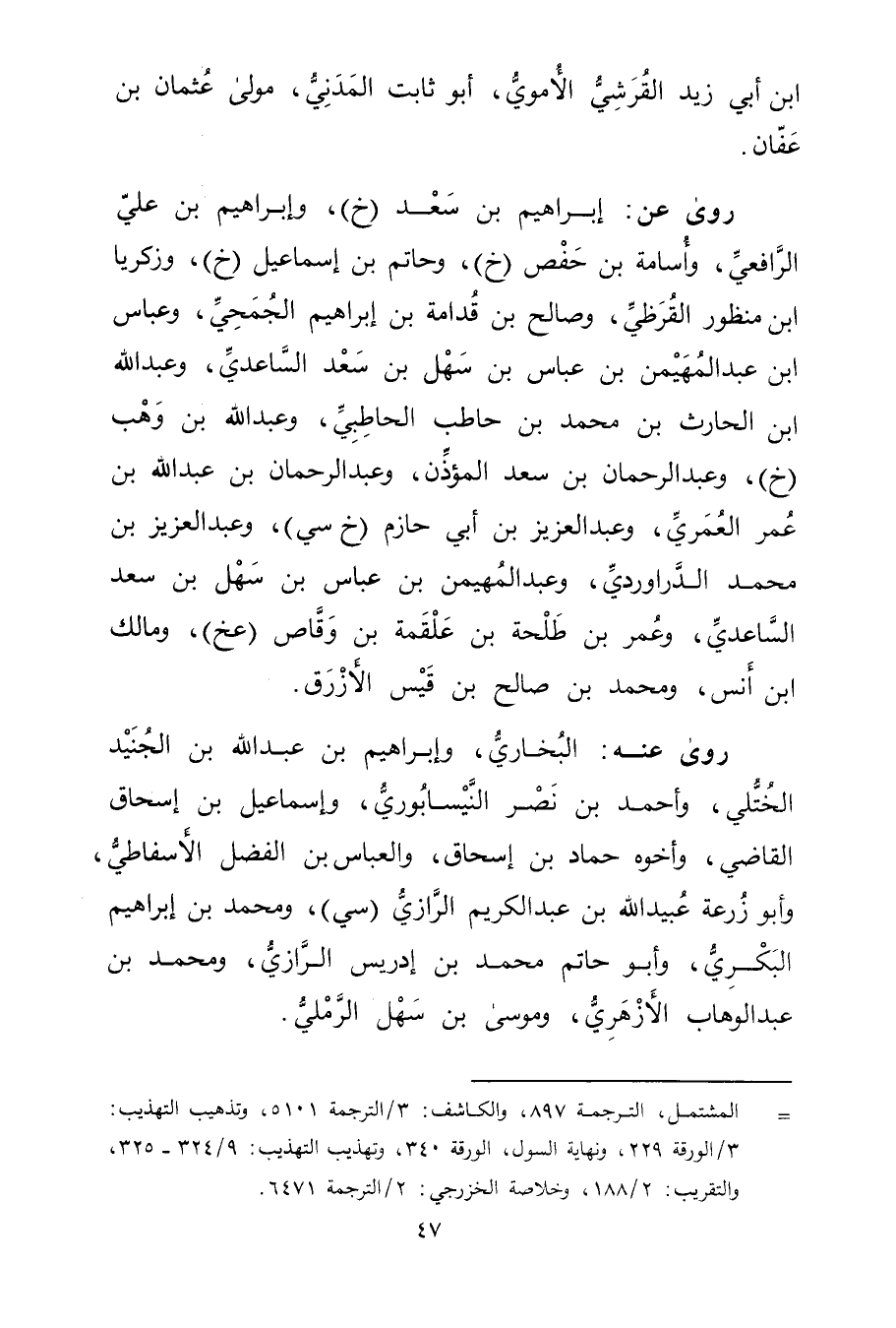 = المشتمل، الترجمة 897، والكاشف: 3 / الترجمة 5101، وتذهيب التهذيب: 3 / الورقة 229، ونهاية السول، الورقة 340، وتهذيب التهذيب: 9 / 324 - 325،