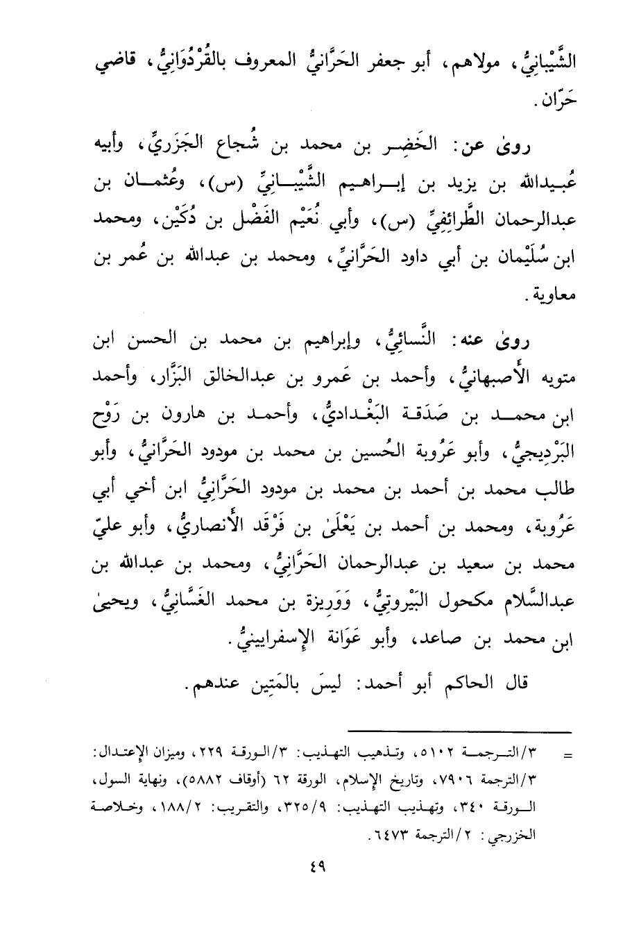 = 3 / الترجمة 5102، وتذهيب التهذيب: 3 / الورقة 229، وميزان الاعتدال: 3 / الترجمة 7906، وتاريخ الاسلام، الورقة 62 (أوقات 5882) ، ونهاية السول،