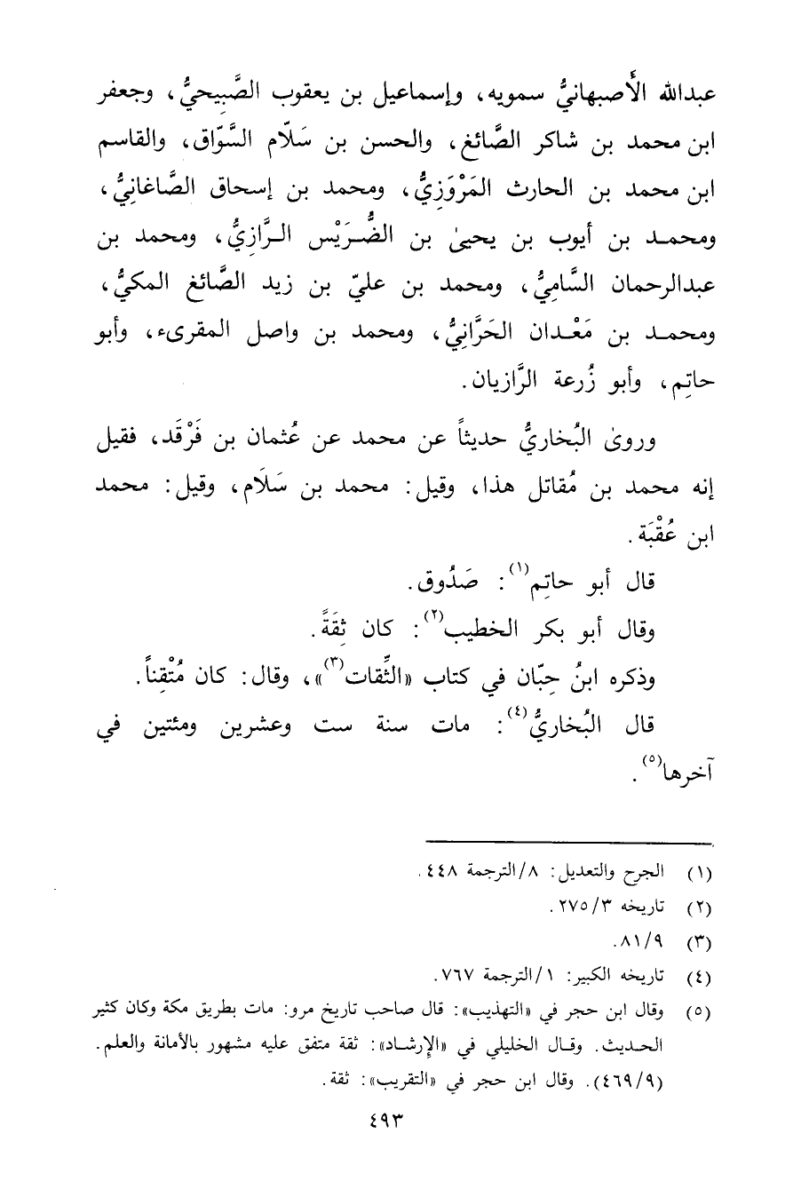 (5) وَقَال ابن حجر في "التهذيب ": قال صاحب تاريخ مرو: مات بطريق مكة وكان كثير الحديث. وَقَال الخليلي في "الارشاد ": ثقة متفق عليه مشهور بالامانة والعلم. (9 / 469) . وَقَال ابن حجر في "التقريب": ثقة.