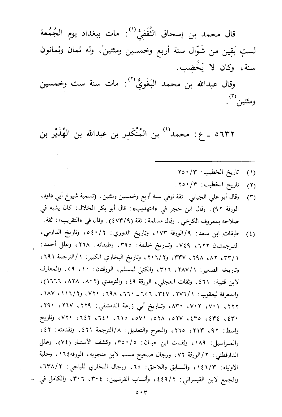(3) وَقَال أبو علي الجياني: ثقة توفي سنة أربع وخمسين ومئتين. (تسمية شيوخ أبي داود، الورقة 92) . وَقَال ابن حجر في "التهذيب ": قال أبو بكر الخلال: كان يشبه في صلاحه بمعروف الكرخي. وَقَال مسلمة: ثقة (9 / 473) . وَقَال في "التقريب": ثقة.
