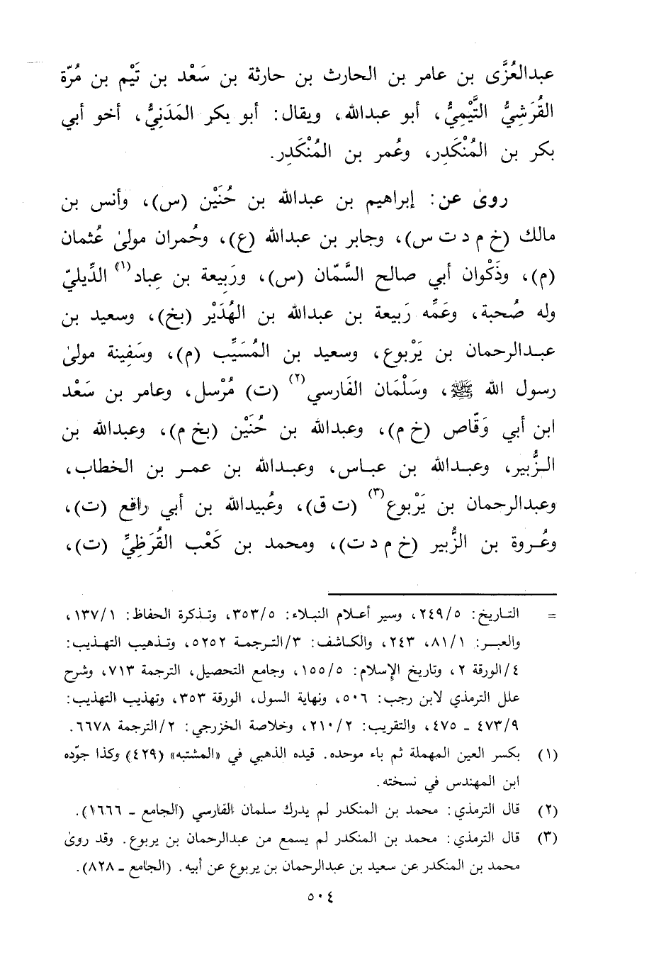 (3) قال التِّرْمِذِيّ: محمد بن المنكدر لم يسمع من عَبْد الرحمن بن يربوع. وقد روى مُحَمَّد بْن المنكدر عَنْ سَعِيد بْن عَبْد الرَّحْمَنِ بْن يربوع عَن أبيه. (الجامع - 828) .