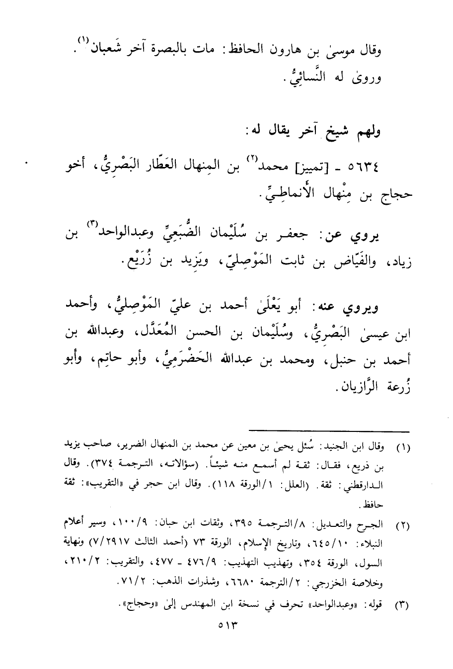 5634 - (تمييز) مُحَمَّد بن المنهال العطار البَصْرِيّ (2) ، أخو حجاج بن منهال الانطاكي.