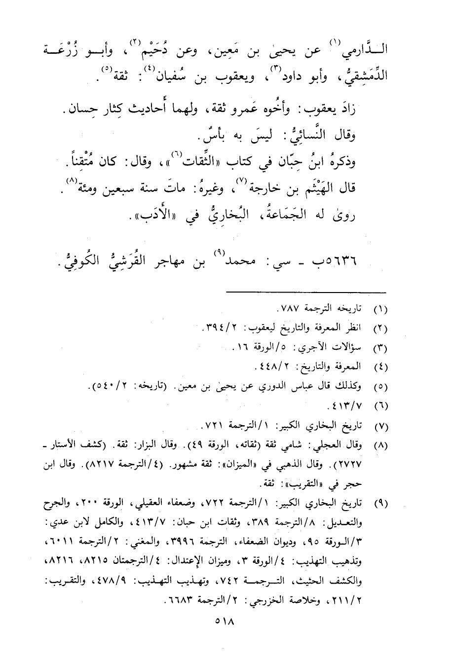 (9) تاريخ البخاري الكبير: 1 الترجمة 722، وضعفاء العقيلي، الورقة 200، والجرح والتعديل: 8 / الترجمة 389، وثقات ابن حبان: 7 / 413، والكامل لابن عدي: 3 / الورقة 95، وديوان الضعفاء، الترجمة 3996، والمغني: 2 / الترجمة 6011، وتذهيب التهذيب: 4 / الورقة 3، وميزان الاعتدال: 4 / الترجمتان 8215، و8216،