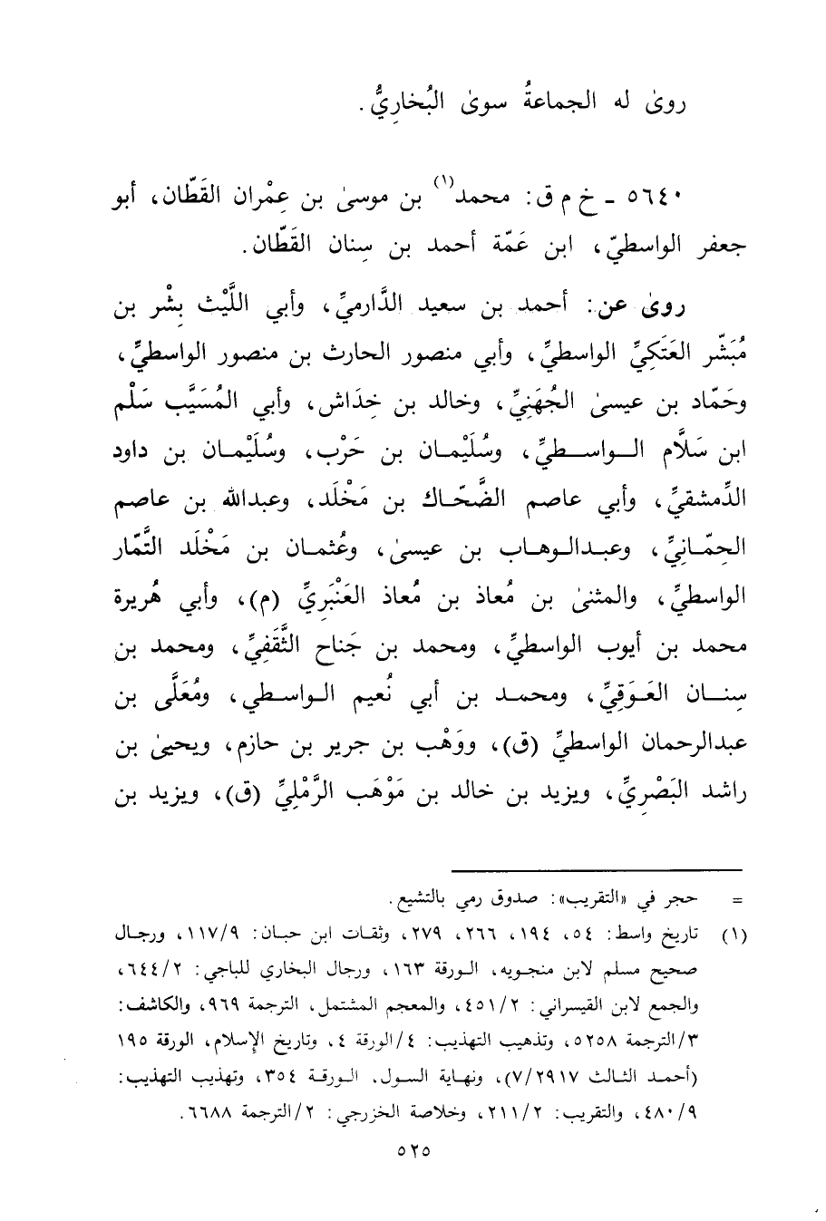 5640 - خ م ق: مُحَمَّد بن مُوسَى بن عِمْران القطان (1) ، أَبُو جعفر الواسطي، ابن عمه أَحْمَد بن سنان القطان.