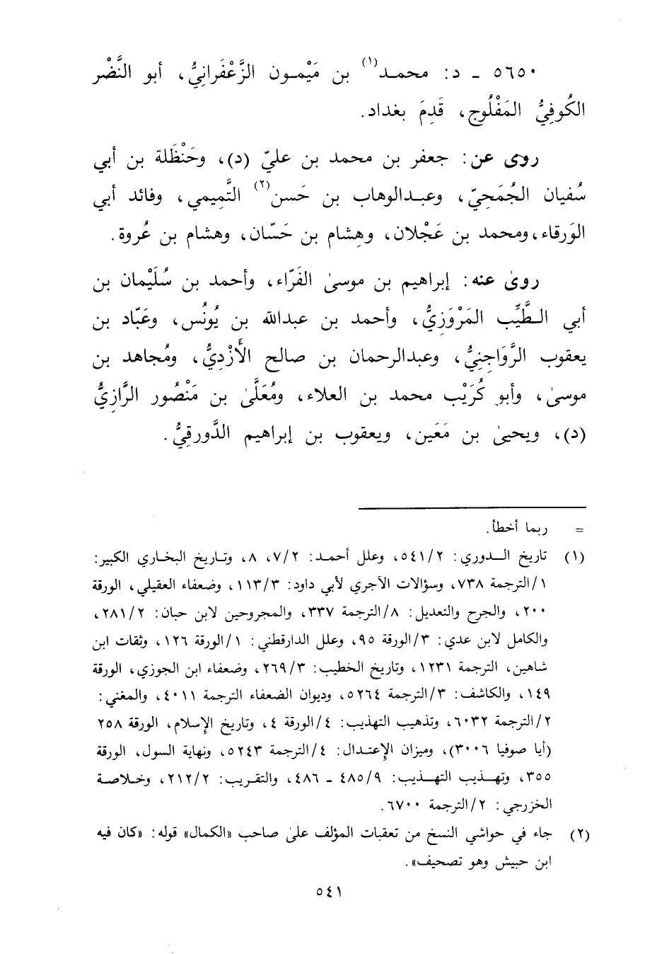 5650 - د: مُحَمَّد بن ميمون الزعفراني (1) ، أَبُو النضر الكوفي المفلوج، قدم بغداد.