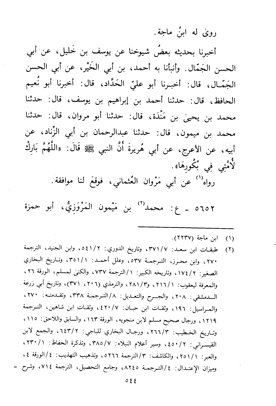 5652 - ع: مُحَمَّد بن ميمون المروزي (2) ، أَبُو حمزة