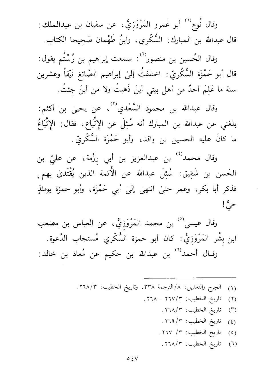 (2) تاريخ الخطيب: 3 / 267 - 268.