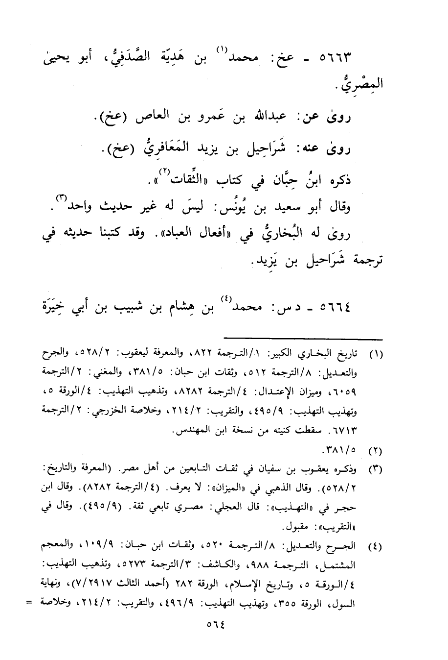 5663 - عخ: مُحَمَّد بن هدية الصدفي (1) ، أبويحيى المِصْرِي.