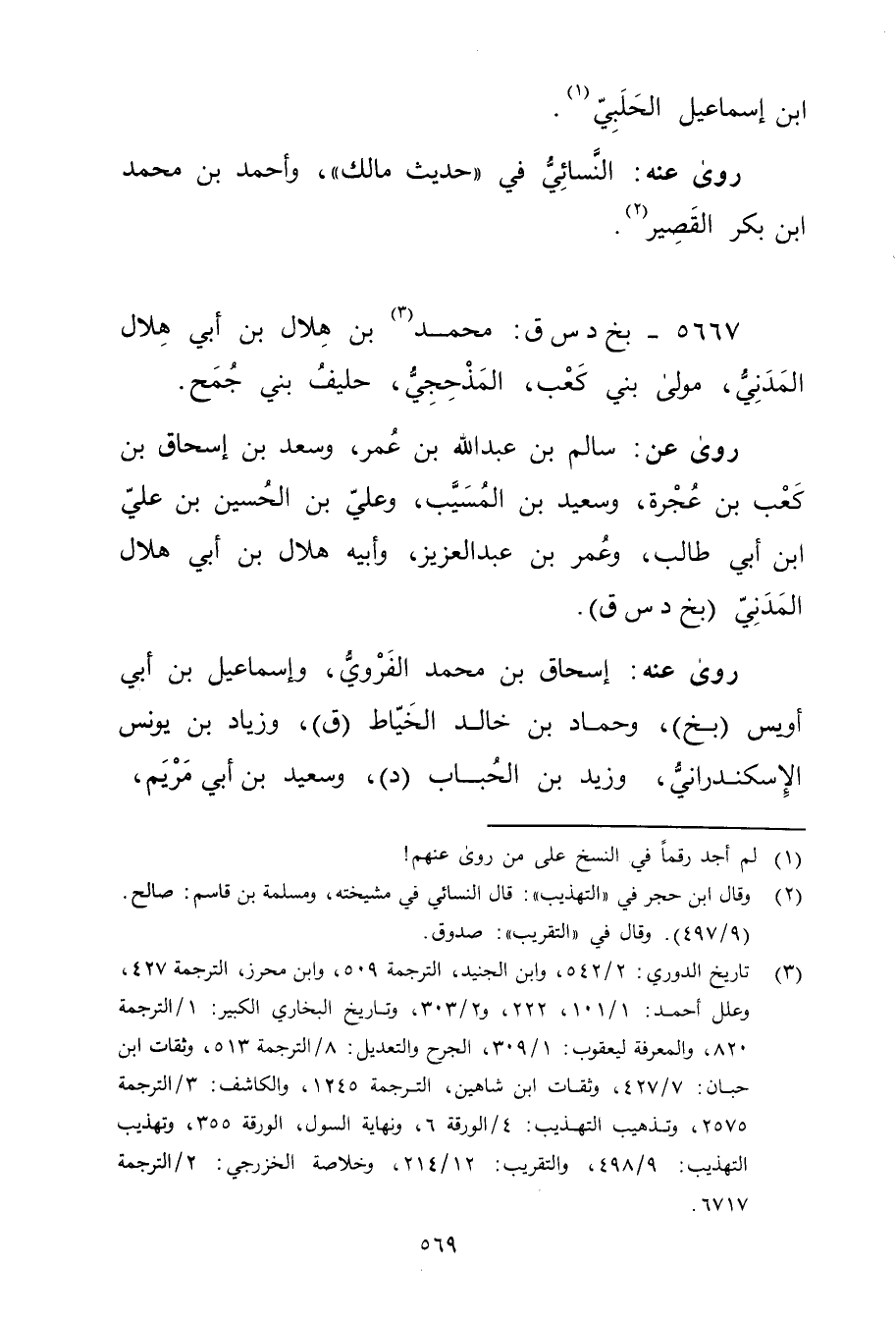 5667 - بخ د س ق: مُحَمَّد بن هلال بن أَبي هلال المدني (3) ، مولى بني كعب، المذحجي، حليف بني جمح.