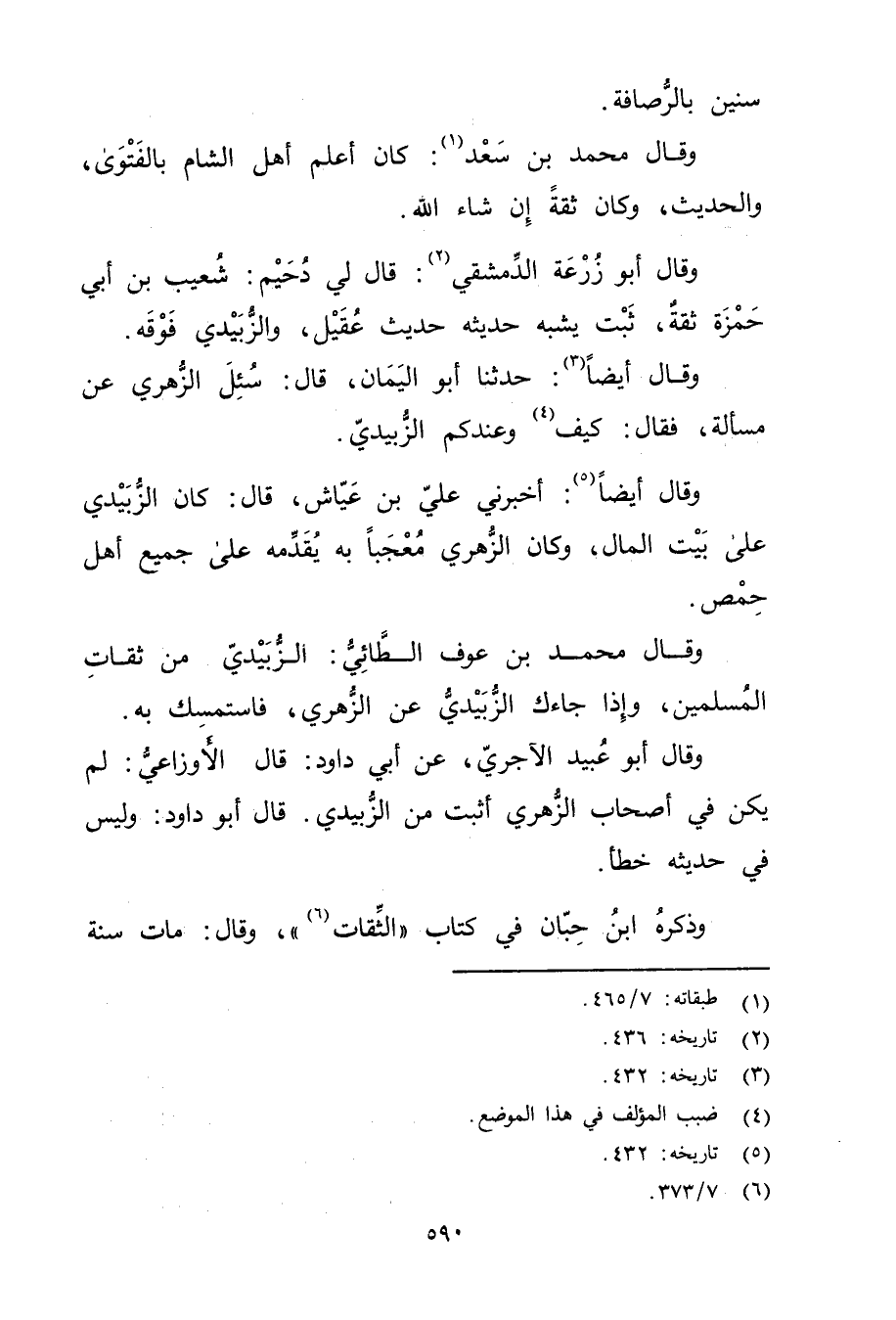 وَقَال أيضا (5) : أخبرني علي بن عياش، قال: كان الزبيدي على بيت المال، وكان الزُّهْرِيّ معجبا بِهِ يقدمه على جميع أهل حمص.