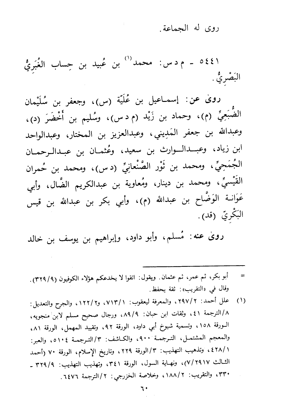 5441 - م د س: مُحَمَّدِ بْنِ عُبَيد بْنِ حِسَابٍ الغبري البَصْرِيّ (1) .