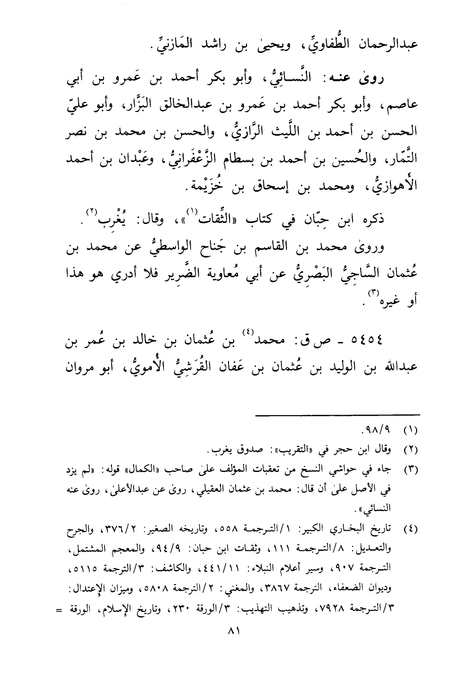 5454 - ص ق: مُحَمَّد بْن عُثْمَان بْن خَالِد بْن عُمَر بْن عَبد الله بْن الوليد بن عثمان بن عفان القرشي الأُمَوِي (4) ، أبو مروان