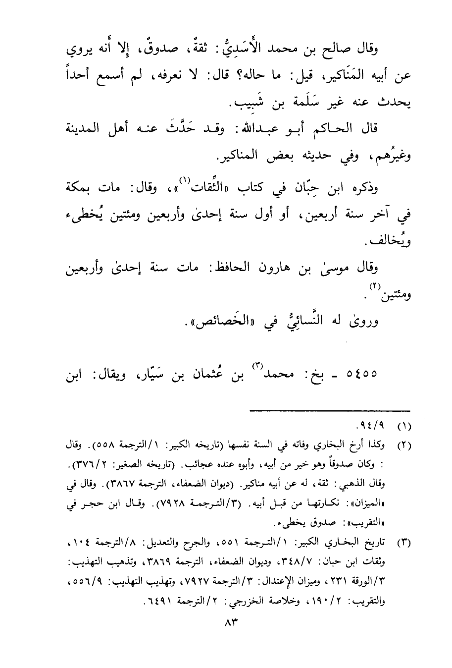 5455 - بخ: مُحَمَّد بن عثمان بن سيار (3) ، ويُقال: ابن