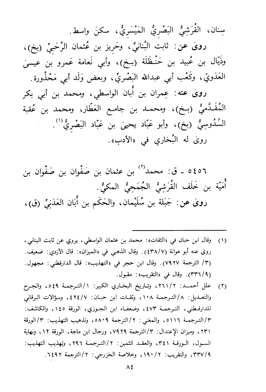 5456 - ق: مُحَمَّد بن عثمان بن صفوان بن صفوان بن أمية بن خلف القرشي الجمحي المكي (2) .