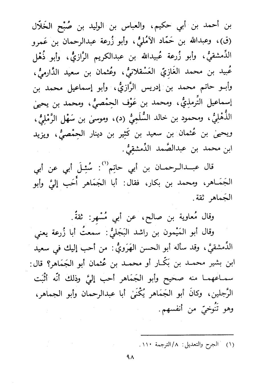 (1) الجرح والتعديل: 8 / الترجمة 110.