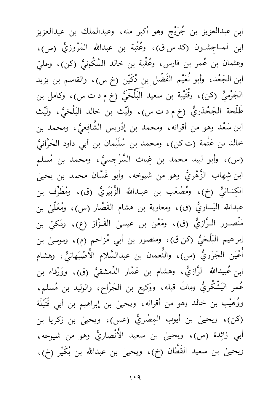ابن عبد العزيز بْن جُرَيْج وهو أكبر منه، وعبد الملك بْن عبد العزيز ابن الماجشون (كد س ق) ، وعتبة بْن عَبد اللَّهِ المروزي (س) ، وعثمان بْن عُمَر بْن فارس، وعقبة بْن خالد السكوني (كن) ، وعلي ابن الجعد، وأبو نعيم الفضل بن دكين (خ س) ، والْقَاسِم بْن يزيد الجرمي (كن) ، وقتيبة بْن سَعِيد البلخي (خ م د ت س) ، وكامل بْن طلحة الجحدري (خ م د ت س) ، وليث بْن خَالِدٍ البلخي، وليث ابن سعد وهو من أقرانه، ومحمد بْن إدريس الشافعي، ومحمد بْن خالد بْن عثمة (ت كن) ، ومحمد بْن سُلَيْمان بْن أَبي داود الحراني (س) ، وأبو لبيد مُحَمَّد بْن غياث السرجسي، ومحمد بن مسلم ابن شهاب الزُّهْرِيّ وهو من شيوخه، وأبو غسان مُحَمَّد بْن يحيى الكناني (خ) ، ومصعب بْن عَبد الله الزبيري (ق) ، ومطرف بْن عَبد الله اليساري (ق) ، ومعاوية بْن هشام القصار (س) ، ومعلى بْن منصور الرازي (ق) ، ومعَنْ بْن عيسى القزاز (ع) ، ومكي بْن إبراهيم البلخي (كن ق) ، ومنصور بْن أَبي مزاحم (م) ، وموسى بْن أعين الجزري (س) ، والنعمان بن عبد السلام الأصبهاني، وهشام ابن عُبَيد الله الرازي، وهشام بْن عمار الدمشقي (ق) ، وورقاء بْن عُمَر اليشكري ومات قبله، ووكيع بْن الجراح، والوليد بْن مسلم، ووهيب بْن خالد وهو من أقرانه، ويحيى بْن إبراهيم بْن أَبي قتيلة (كن) ، ويحيى بْن أيوب المِصْرِي (عس) ، ويحيى بْن زكريا بْن أَبي زائدة (س) ، ويحيى بْن سَعِيد الأَنْصارِيّ وهُوَ من شيوخه، ويحيى بن سَعِيد القطان (خ) ، ويحيى بْن عَبد اللَّهِ بن بكير (خ) ،