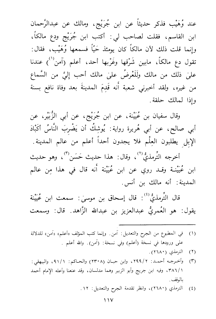(1) في المطبوع من الجرح والتعديل: آمن. وإنما كتب المؤلف "أعلم ""آمن "للدلالة على ورودها في نسخة (أعلم) وفي نسخة: (آمن) . والله أعلم.