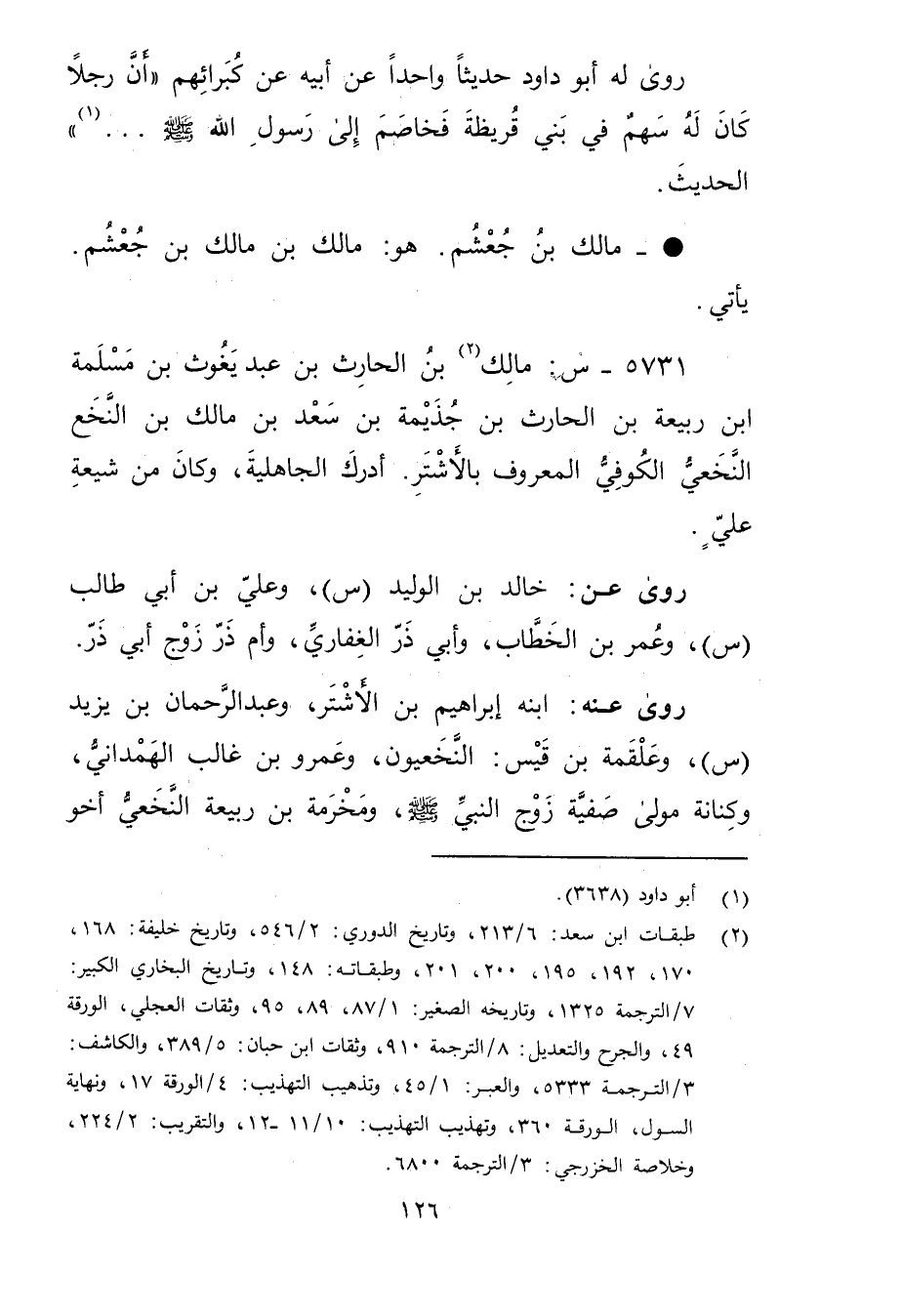 5731 - س: مالك بن الحارث بن عبد يغوث بن مسلمة ابن ربيعة بن الحارث بن جذيمة بن سعد بن مالك بن النخع النخعي الكوفي المعروف بالأشتر (2) . أدرك الجاهلية، وكان من شيعة علي.