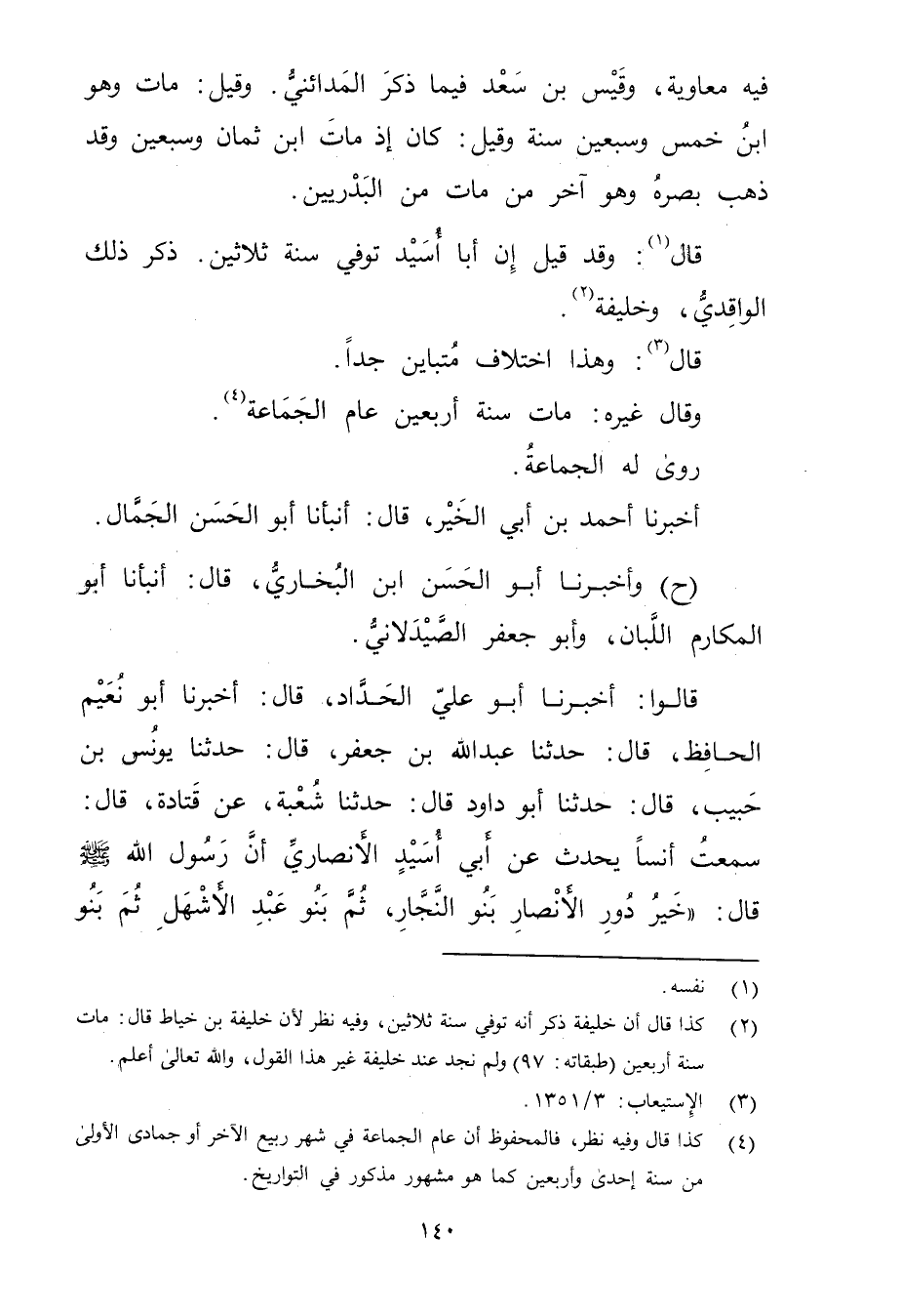 وَقَال غيره: مات سنة أربعين عام الجماعة (4) .