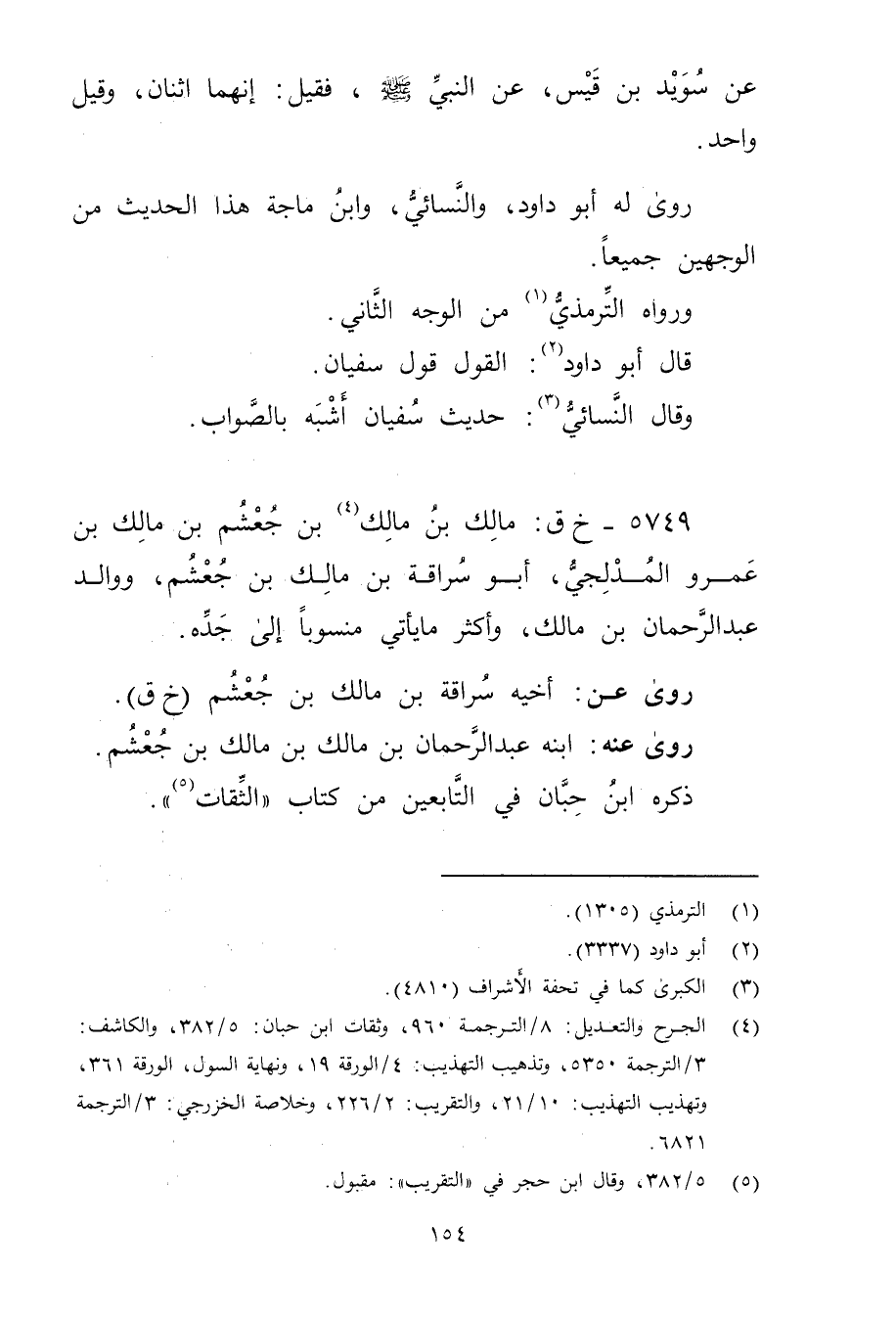 (4) الجرح والتعديل: 8 / الترجمة 960، وثقات ابن حبان: 5 / 382، والكاشف: 3 / الترجمة 5350، وتذهيب التهذيب: 4 / الورقة 19، ونهاية السول، الورقة 361، وتهذيب التهذيب: 10 / 21، والتقريب: 2 / 226، وخلاصة الخزرجي: 3 / الترجمة 6821.