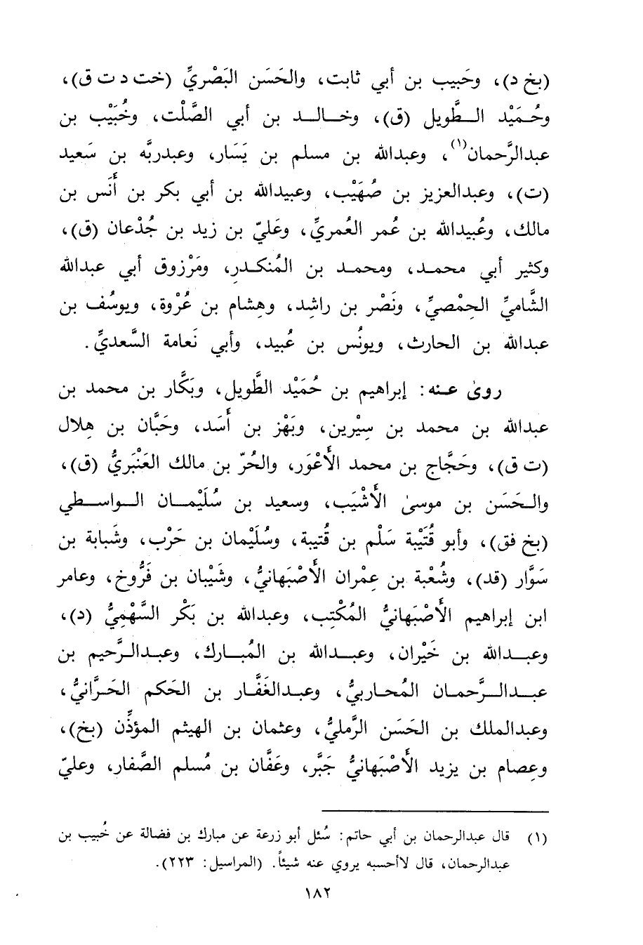 (1) قال عَبْد الرَّحْمَنِ بْن أَبي حاتم: سئل أبو زُرْعَة عَن مبارك بن فضالة عَنْ خَبِيبِ بْنِ عَبْدِ الرَّحْمَنِ، قال لا أحسبه يروي عنه شيئا. (المراسيل: 223) .