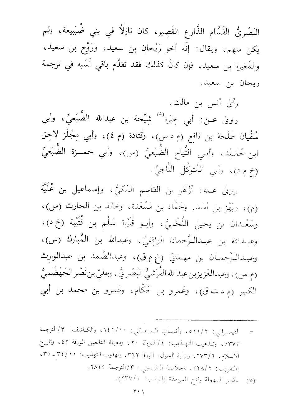 5373، وتذهيب التهذيب: 4 / الورقة 21، ومعرفة التابعين الورقة 42، وتاريخ الاسلام، 6 / 273، ونهاية السول، الورقة 362، وتهذيب التهذيب: 10 / 34 - 35، والتقريب: 2 / 228، وخلاصة الخزرجي: 3 / الترجمة 6845. بكسر المهملة وفتح الموحدة (التبصير: 1 / 237) .