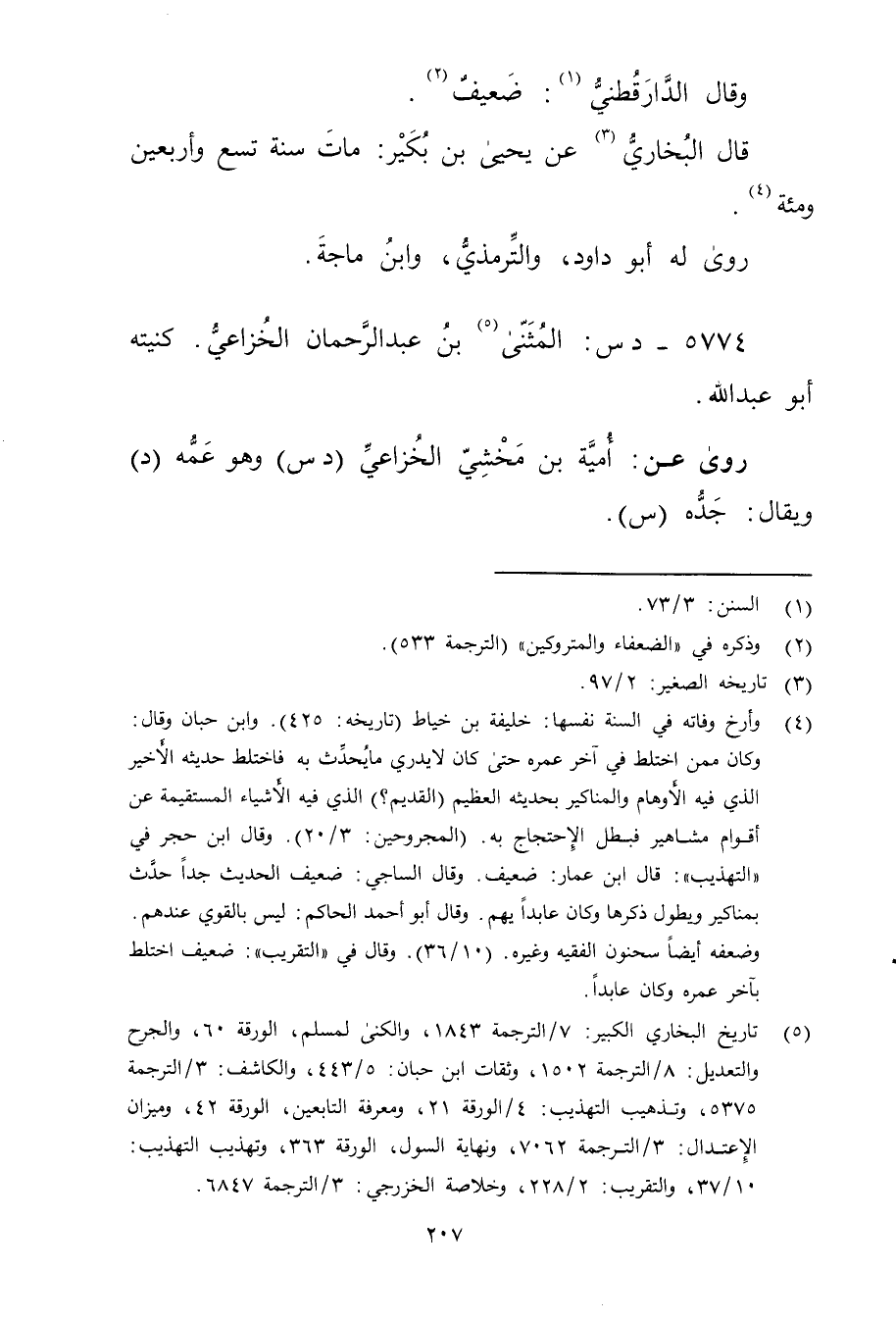 5774 - د س: المثنى بن عَبْد الرحمن الخزاعي (5) . كنيته أَبُو عَبْد الله.