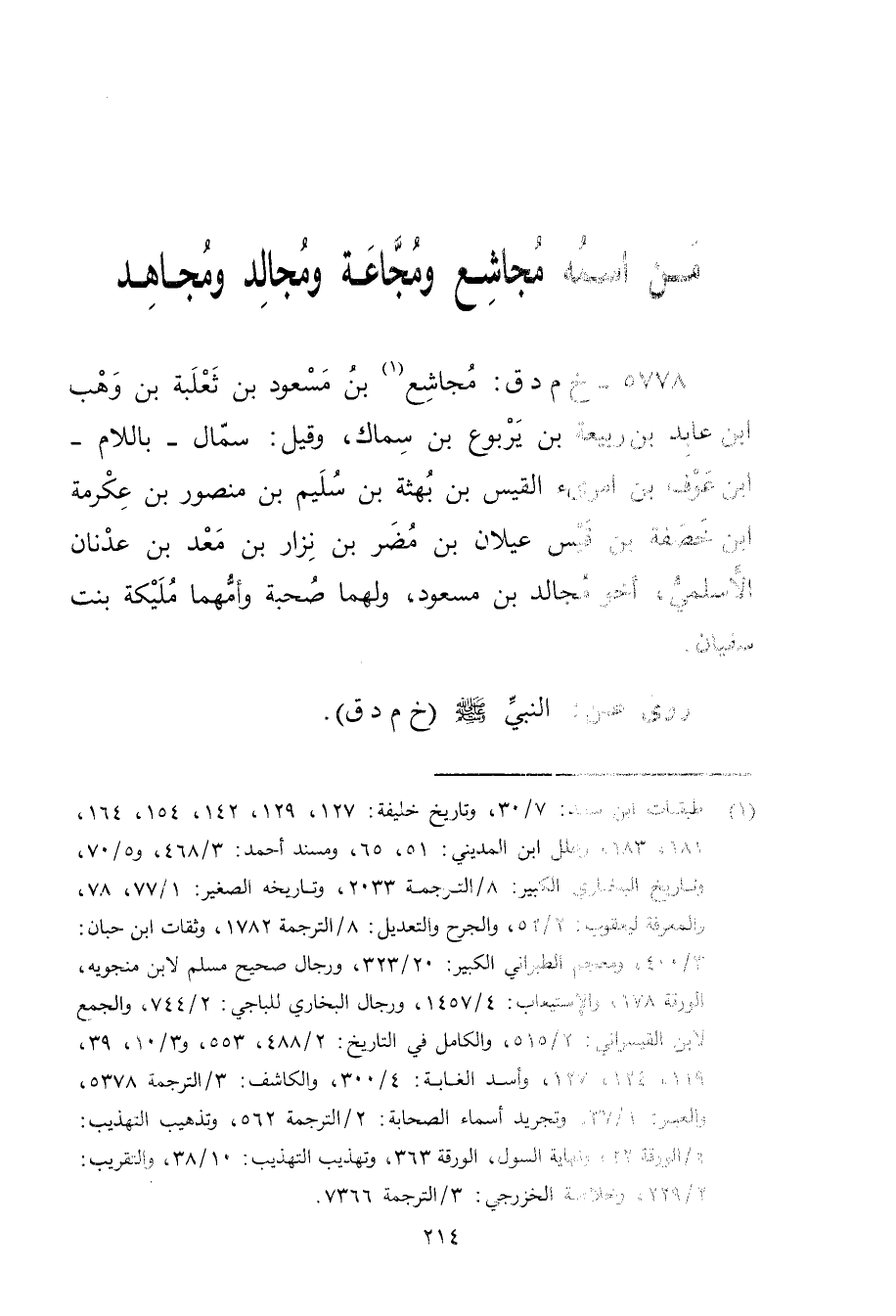 من اسمه مجاشع ومجاعة ومجالد ومجاهد