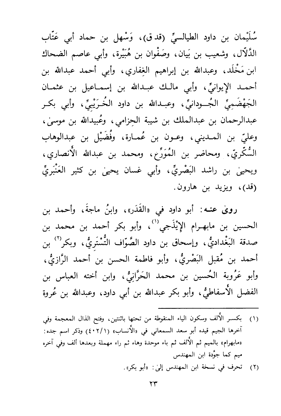 (1) بكسر الالف وسكون الياء المنقوطة من تحتها باثنتين، وفتح الذال المعجمة وفي آخرها الجيم قيده أبو سعد السمعاني في "الانساب " (1 / 402) وذكر اسم جده: "مابهرام "بالميم ثم الالف ثم باء موحدة وهاء ثم راء مهملة وبعدها ألف وفي آخره ميم كما جودة ابن المهندس.