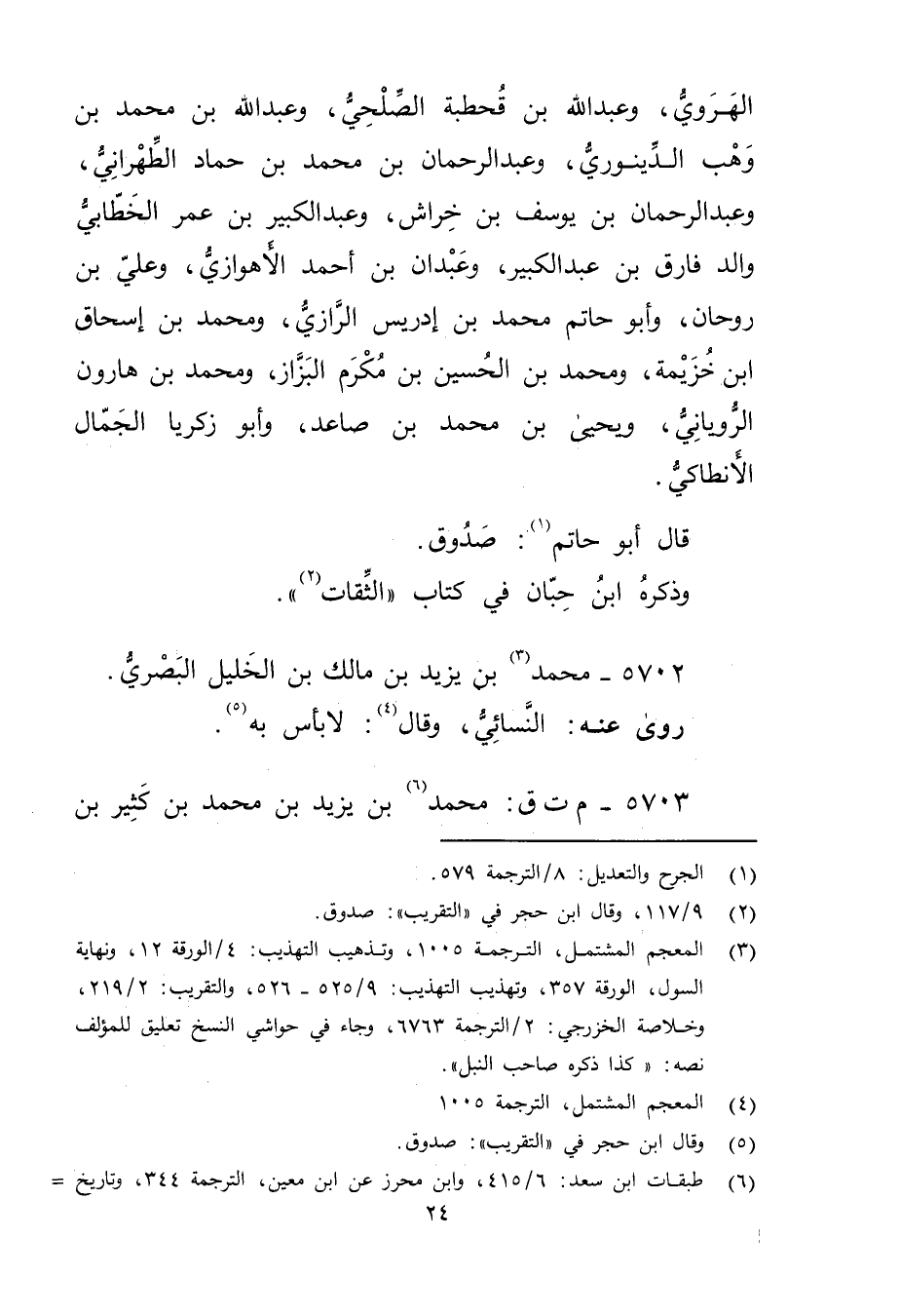 5703 - م ت ق: مُحَمَّد بن يزيد بن مُحَمَّد بن كثير (6) بْن